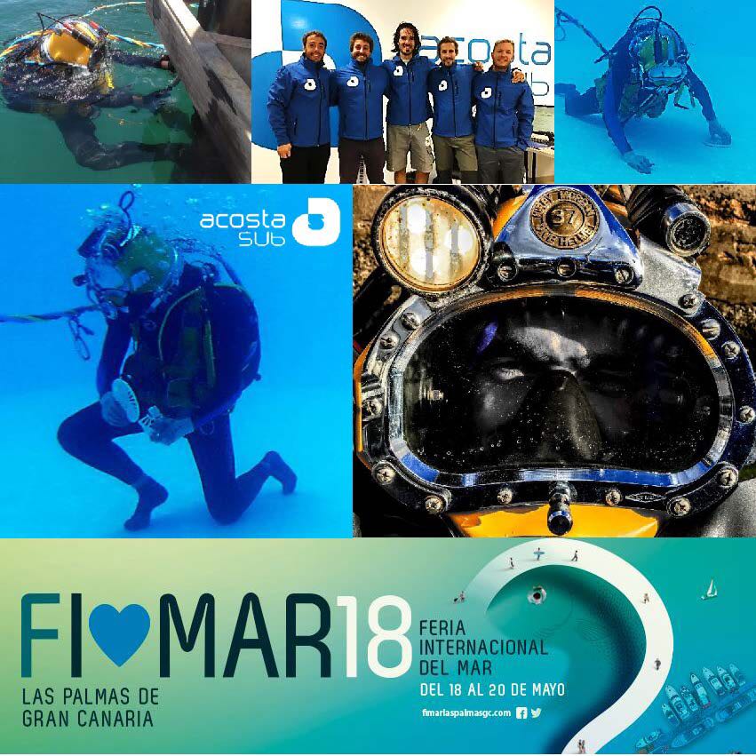 AcostaSub participará en FIMAR 2018 con un stand en el que se proporcionará al público información de primera mano y actualizada acerca del buceo profesional, así como la importancia y las restricciones existentes en materia de seguridad en los trabajos subacuáticos. Además, el público podrá ver parte del equipo de buceo profesional con suministro de superficie, además de una demostración de trabajos realizados por la empresa.