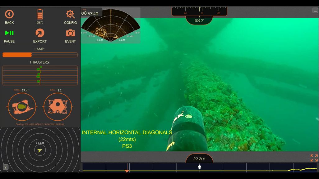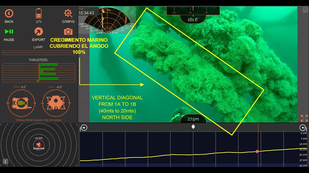 Las altas prestaciones del Oceanbotics SRV-8 fue vital para realizar con éxito el proyecto, ya que fue configurado con diferentes elementos para el monitoreo: las sondas Oculus M750d y Polatrak CP Probe.