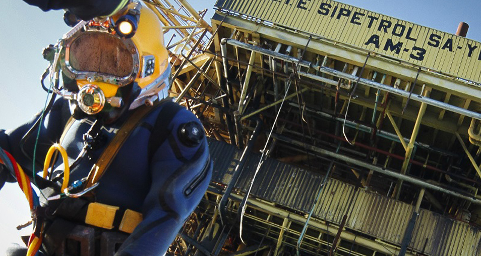 Buzo en planta petrolifera. FOTO: Trabsub (Argentina)