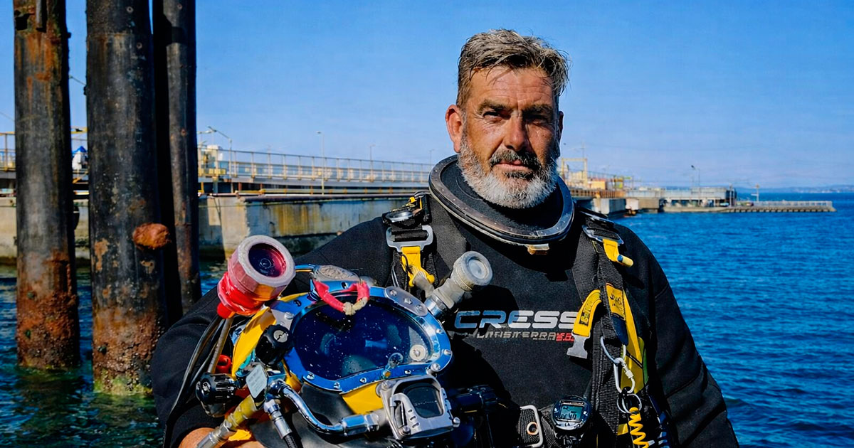 Para abordar estas cuestiones, SubaQuatica Magazine ha hablado con José Manuel Gómez Pando (Amberes, 1971), un buzo profesional cántabro con más de 35 años en el oficio. Formado en su juventud en el Centro de Buceo de la Armada (CBA) de Cartagena y con una larga trayectoria en trabajos subacuáticos de todo tipo en “mil empresas”, como relata con la naturalidad y elocuencia que han marcado toda la conversación, ha vivido la transición entre el buceo de antes y el actual, y observa con preocupación cómo la edad, el desgaste y la precarización del oficio siguen sin tener una respuesta estructural clara.