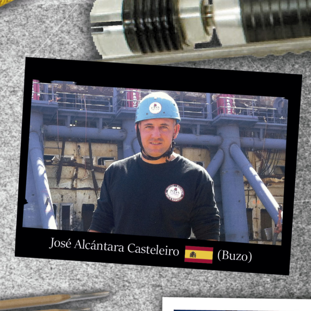 “El trabajo en cubierta fue espectacular y los compañeros montaban unas maniobras impresionantes. La experiencia de David Salvador en trabajos verticales fue de gran ayuda. Tuve la suerte de trabajar con este grupo de grandes profesionales del buceo. Sacábamos los trabajos adelante en tiempo récord y nos sentíamos respetados por toda la comunidad de buzos”, dice Benito Ledesma.