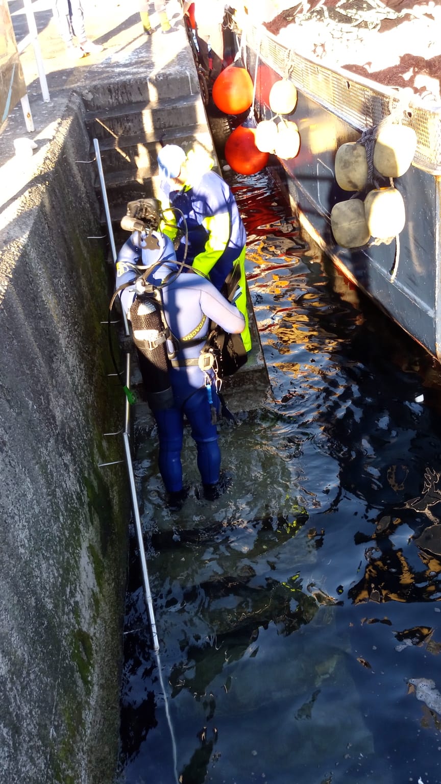 Durante la jornada del martes se produjo en Portonovo (Galicia) una operación de buceo profesional, que a la vista de las imágenes facilitadas a SQM cometen diferentes infracciones. En las imágenes se intuye que el buceador está llevando a cabo la limpieza de las palas de una embarcación de pesca, que aparentemente puede tener enredado cabos o retales del arte de pesca en las hélices. Estas imágenes y vídeos han sido facilitadas por los colectivos que velan por el cumplimiento de la normativa, sindicatos y grupos empresariales.