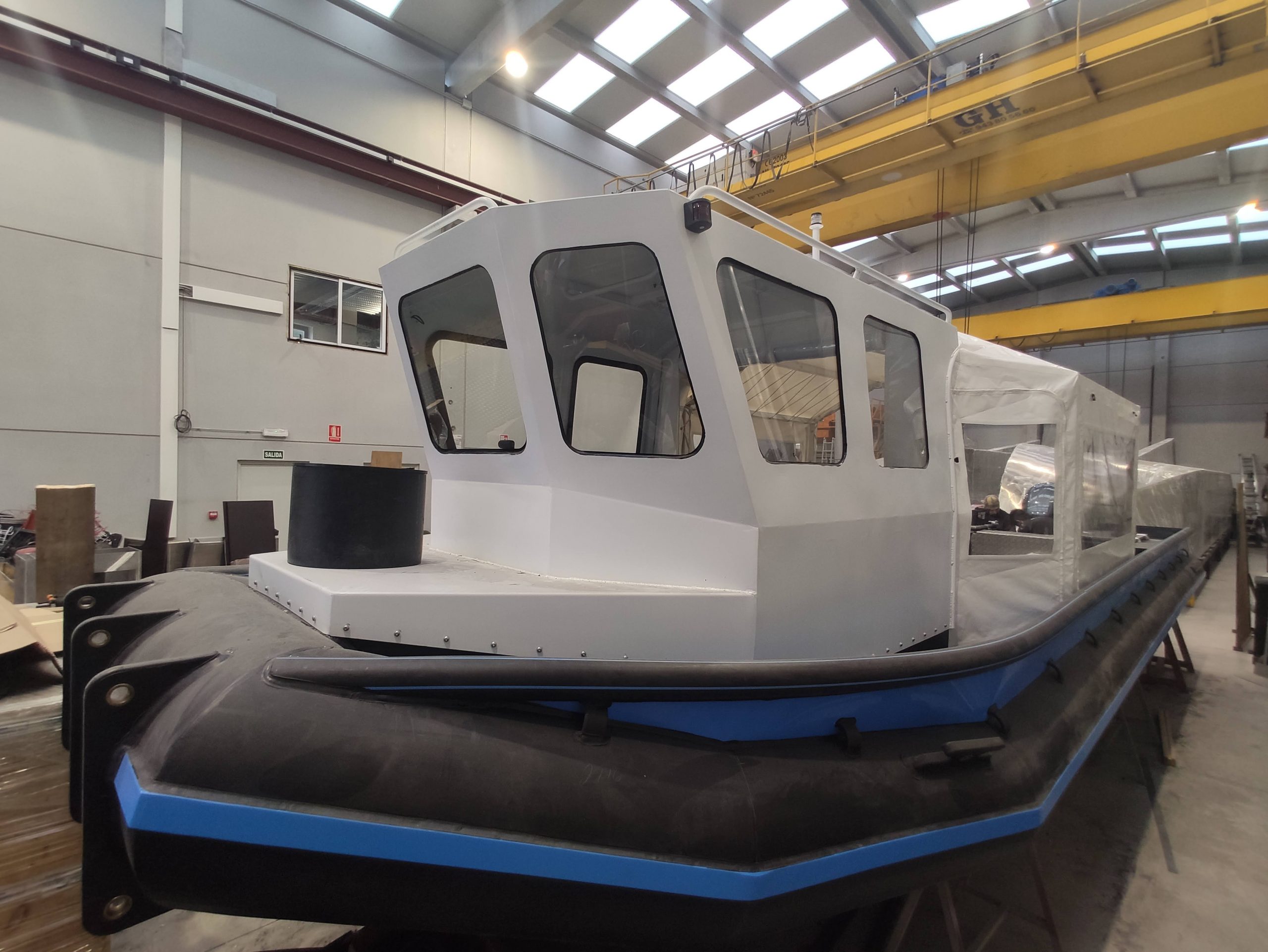 Una de las embarcaciones en aluminio marino durante el proceso de construcción en los astilleros Elimat
