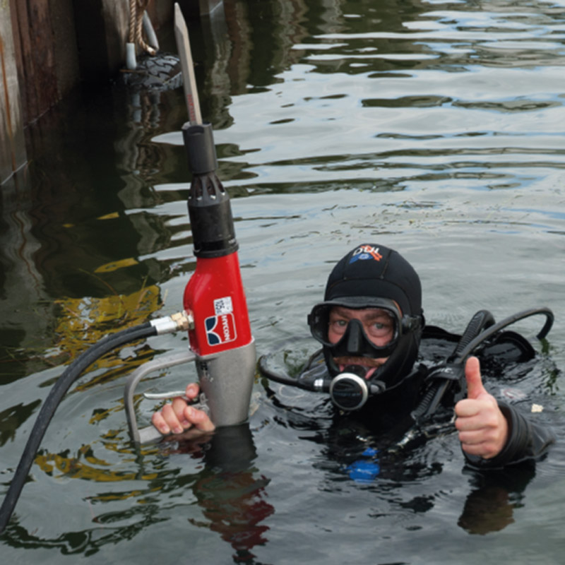 Imagen de un buzo comercial con un martillo Hycon que suministra en exclusiva ANZEVE