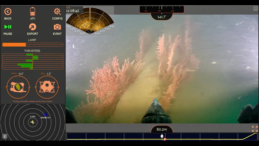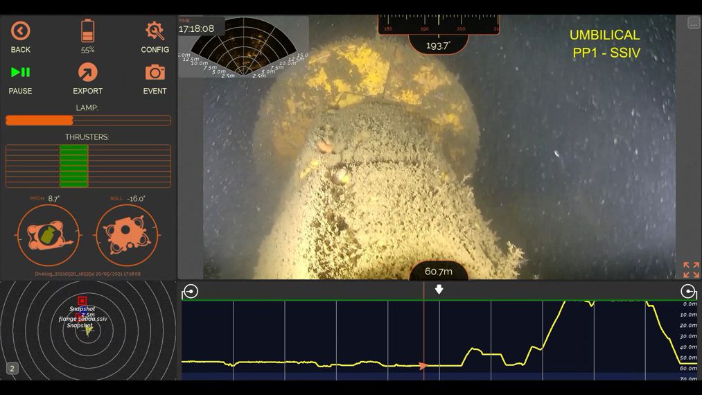Las altas prestaciones del Oceanbotics SRV-8 fue vital para realizar con éxito el proyecto, ya que fue configurado con diferentes elementos para el monitoreo: las sondas Oculus M750d y Polatrak CP Probe.