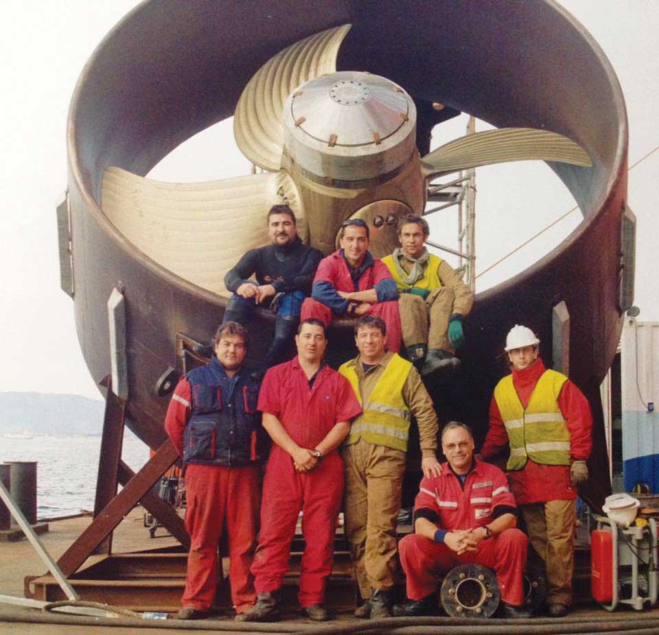 Su etapa con la compañía gibraltareña fue la que le catapultó profesionalmente y la que le hizo decidirse por el sector naval, frente a las obras hidráulicas dentro del buceo comercial. “Estuve casi 19 años en Gibunco y gocé de la confianza de la compañía. Los principios, como en todos los aprendizajes, fueron duros. Los trabajos de limpiezas de cascos, reparaciones de buques con Cox´s Bolts y salvamentos, eran duros, especialmente por las noches y con mal tiempo. En esa época, la empresa contaba con un sistema de limpieza SCAMP.